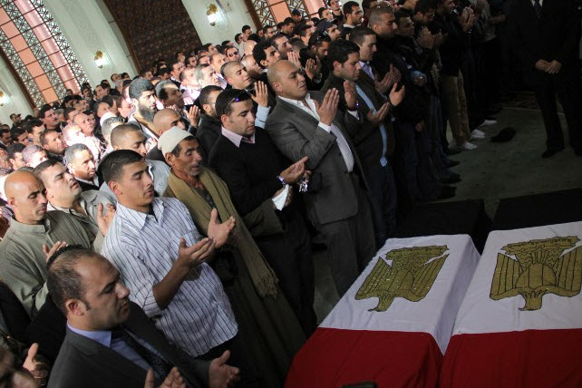 وشارك الاحد في جنازة الضحايا الآلاف من اهالي المدينة الغاضبين مرددين "بالروح بالدم نفديكي يا بورسعيد" و"يا بلادنا يا تكية ضربوكي الداخلية" وصبوا جام غضبهم على جماعة الاخوان المسلمين هاتفين "يسقط يسقط حكم المرشد"، في اشارة الى محمد بديع مرشد جماعة الاخوان المسلمين التي ينتمي اليها الرئيس محمد مرسي.