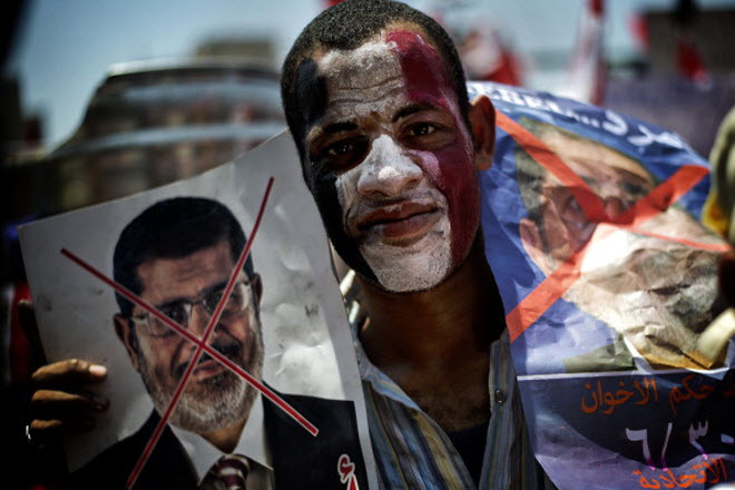 ونزلت حشود كبيرة من المصريين الى الشوارع في القاهرة والعديد من المحافظات للمطالبة باستقالة مرسي مرددة شعار "ارحل" استجابة لدعوة حملة "تمرد" التي اعلنت انها جمعت 22 مليون توقيع لسحب الثقة منه واجراء انتخابات رئاسية مبكرة، فيما لا يزال عشرات الآلاف من مناصري مرسييعتصمون في ميدان رابعة العدوية بالقرب من القصر الجمهوري، وآلاف آخرين في محافظات عدة في الصعيد، في مشهدين منفصلين ينذران بوقوع اقتتال أهلي.