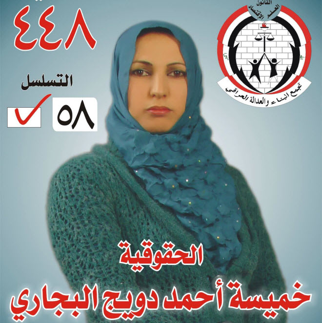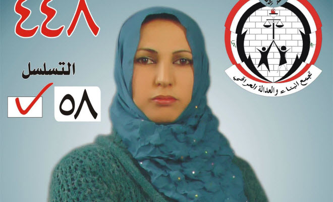 ففي محافظة الموصل الشمالية اغتيلت في الرابع عشر من الشهر الحالي المرشحة للانتخابات عن قائمة البناء والعدالة خميسة أحمد البجاري مع زوجها بإطلاق النار من قبل ثلاثة مسلحين يرتدون زي الشرطة اثناء مشاركتهما في حفل زفاف لدى أقاربهما في قرية العريش جنوب الموصل. ويرأس قائمة تجمع البناء والعدالة الانتخابية نائب رئيس مجلس محافظة نينوى الكردي المعارض ديلدار زيباري.