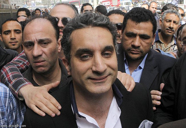 من جهته، عبر الإعلامي المصري باسم يوسف، في وقت سابق، عن سعادته، بموقف رئيس حزب الدستور، محمد البرادعي، منه وتضامنه معه، بعد قرار النيابة العامة بضبطه وإحضاره بتهمة إهانة الرئيس.