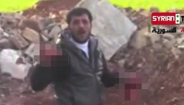 لايزال الفيديو الذي أظهر مقاتلاً سوريًا معارضًا، وهو يقطّع جثة جندي من الجيش النظامي، ثم يحاول نهش قلبه، يثير ادانات دولية واسعة باعتبار أنه يشكل "جريمة حرب"..