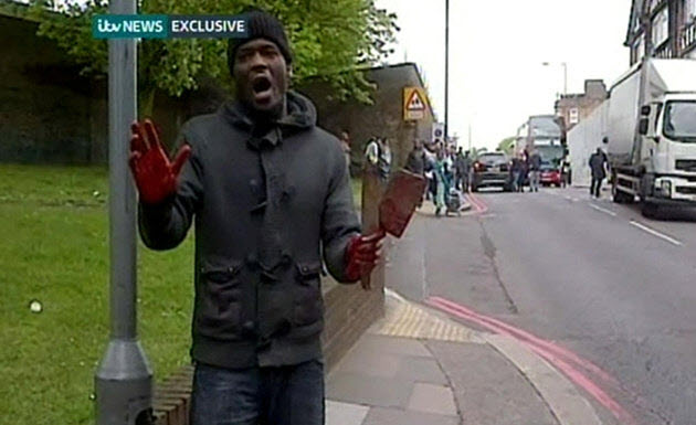 في حادث قتل، صنفته حكومة كاميرون بالعمل الإرهابي، ذبح مهاجمون جنديا بريطانيا بالسيف كما أصيب اثنين آخرين بجراح بليغة يعتقد انهما المنفذين.